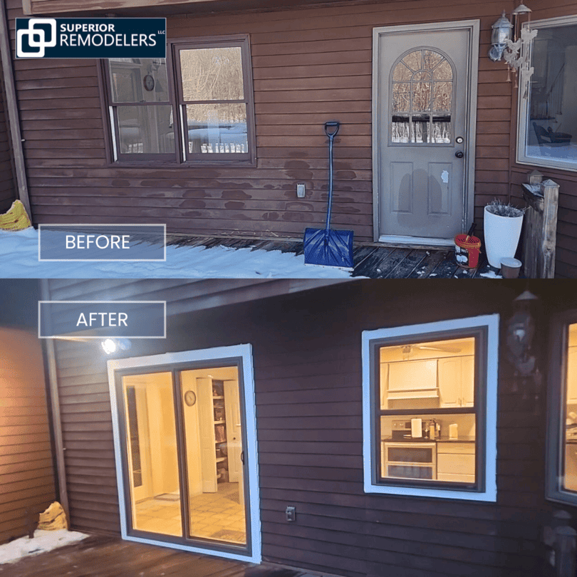 We installed new double pane sliding glass door instead of old window with with drafts. Also we replace the door with a window to improve the energy efficiency of home.