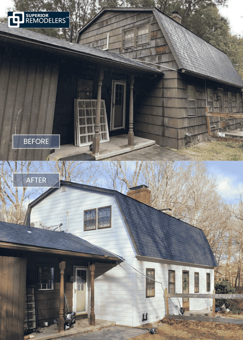Integrated the new siding seamlessly with the existing porch structure and maintained the original porch posts for character.