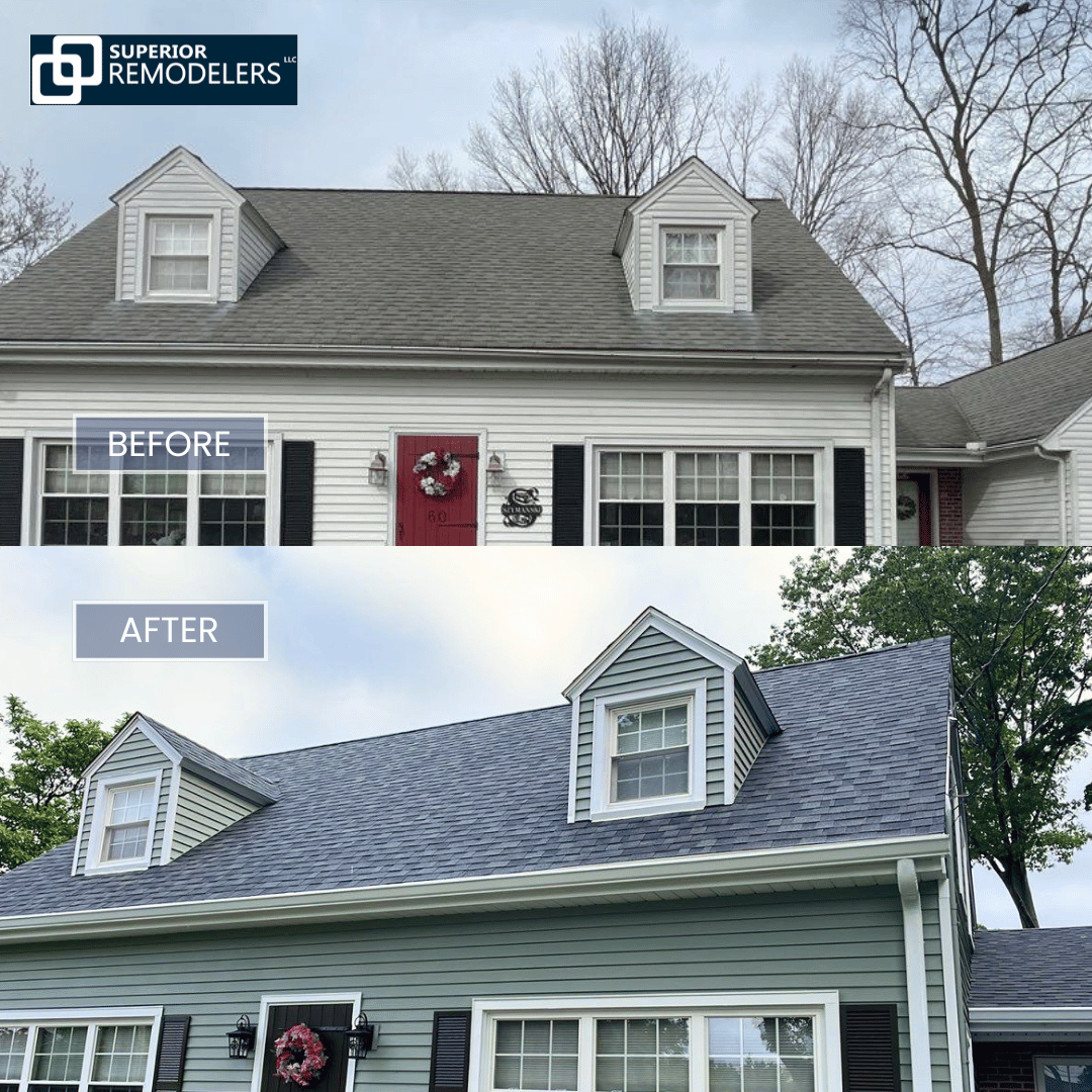 Superior Remodelers completed a full roof replacement, installing high-quality architectural shingles in a modern gray tone that delivers both durability and visual appeal. We paid close attention to the dormer areas, upgrading flashing and ensuring precise shingle placement for maximum protection. The new roof features a consistent color, improved ventilation, and a sharp, finished look that significantly enhances the home’s exterior.