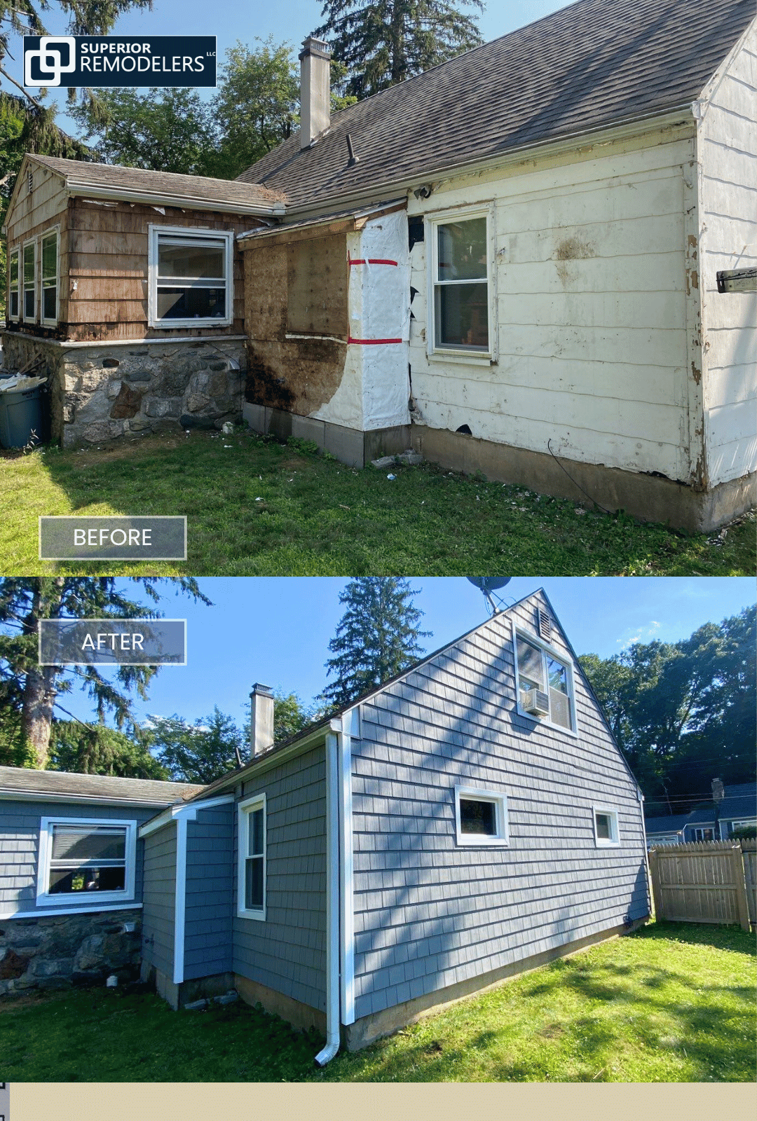 The homeowner in Bethel, CT reached out to Superior Remodelers to replace their old, damaged siding and outdated windows. The home’s exterior showed significant wear - with peeling paint, cracked panels, and areas of exposed wood - impacting both curb appeal and energy efficiency.