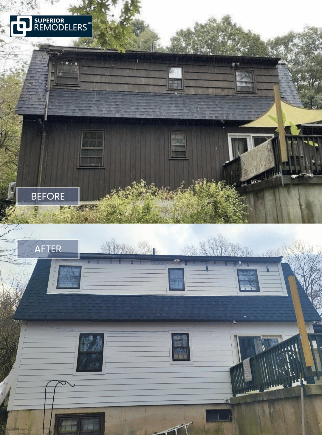 The homeowner reached out because the existing wood siding was heavily weathered, darkened, and deteriorating. The exterior looked outdated, absorbed moisture, and no longer provided proper protection or curb appeal. They wanted a long-lasting, low-maintenance upgrade that would brighten the home and completely overhaul the appearance.