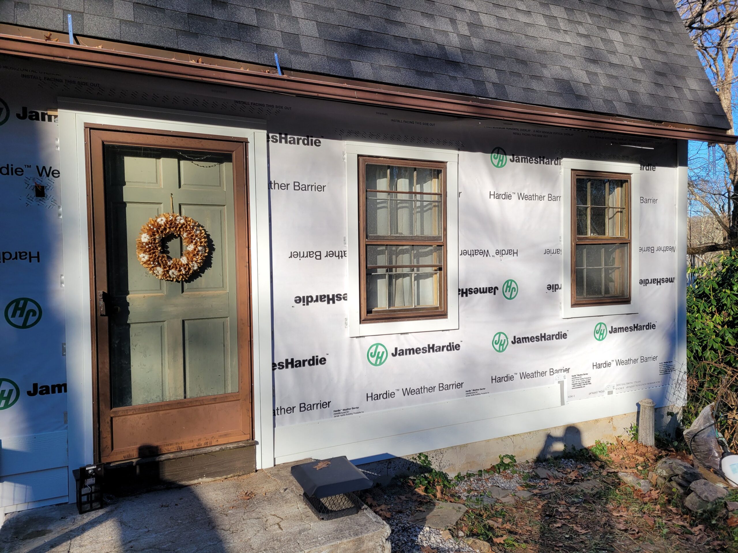 • Integrated the new siding seamlessly with the existing porch structure and maintained the original porch posts for character.