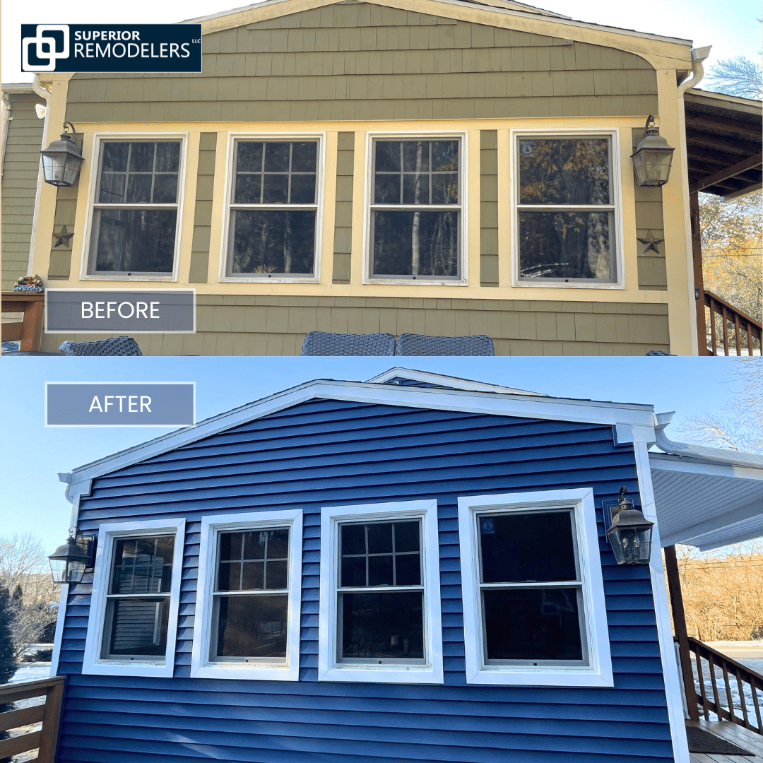 We have installed CertainTeed Monogram siding in Midnight blue and replaced one of the windows.