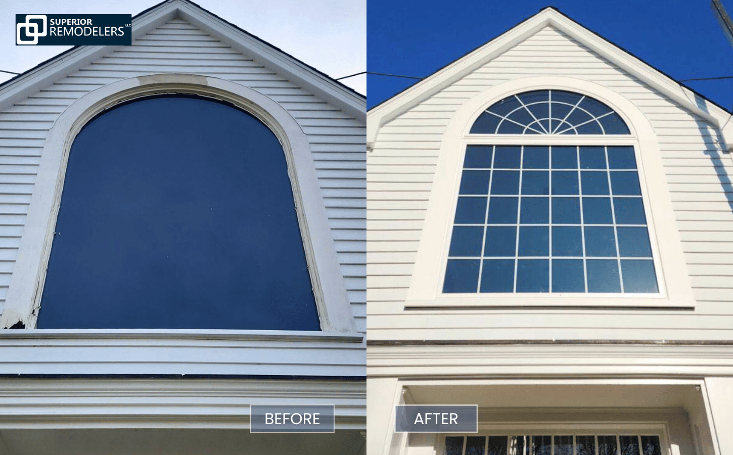 Superior Remodelers replaced the outdated unit with a custom-fit arched window designed for durability, insulation, and timeless style. The new window brightens the interior, enhances curb appeal, and provides lasting protection against the elements - a perfect balance of elegance and efficiency for this Newtown home.