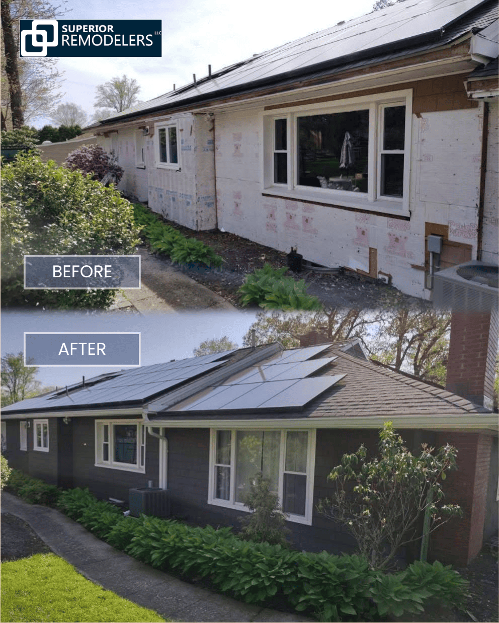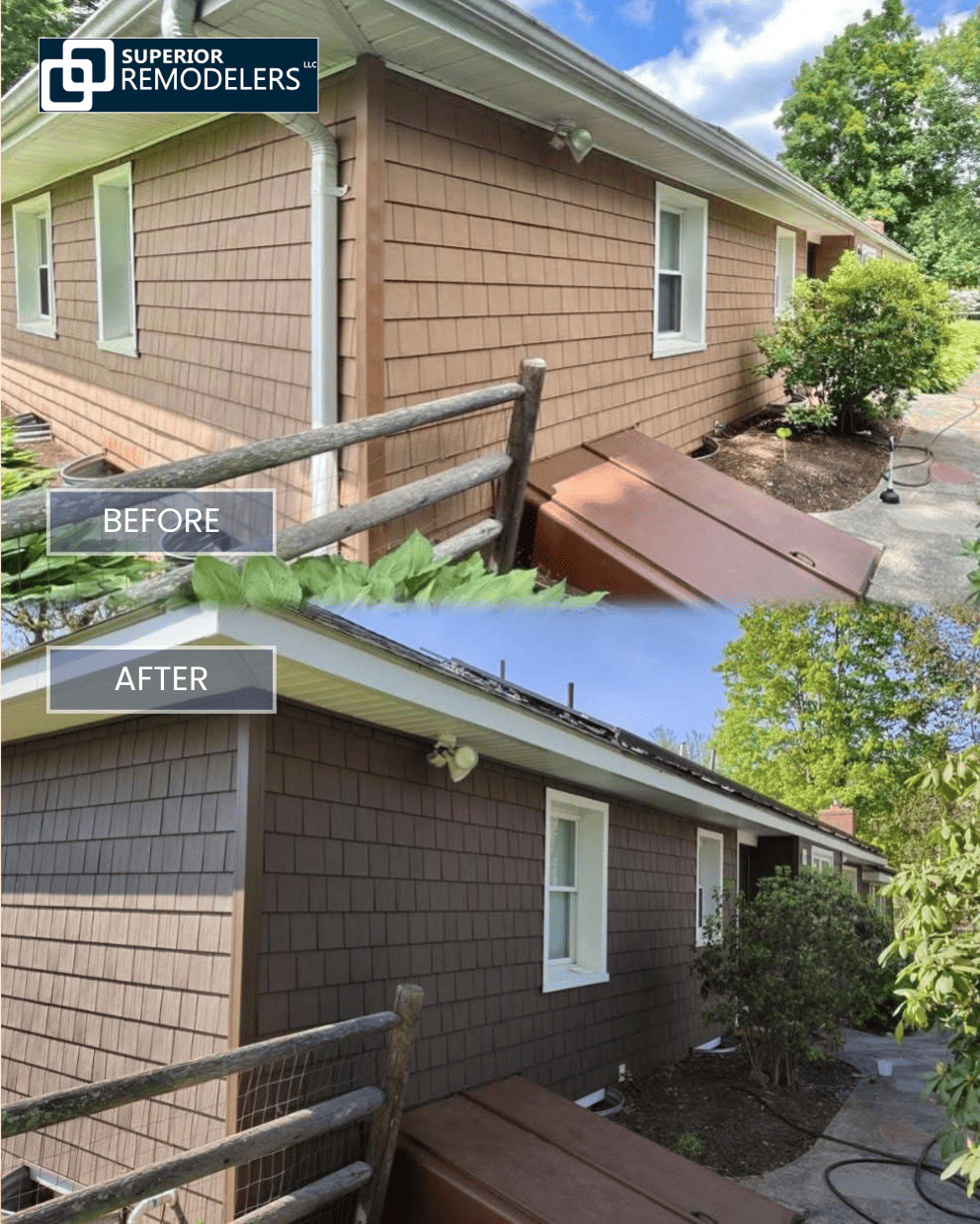Superior Remodelers installed new, weather-resistant siding and modern gutters, instantly boosting curb appeal and safeguarding the home for years to come.