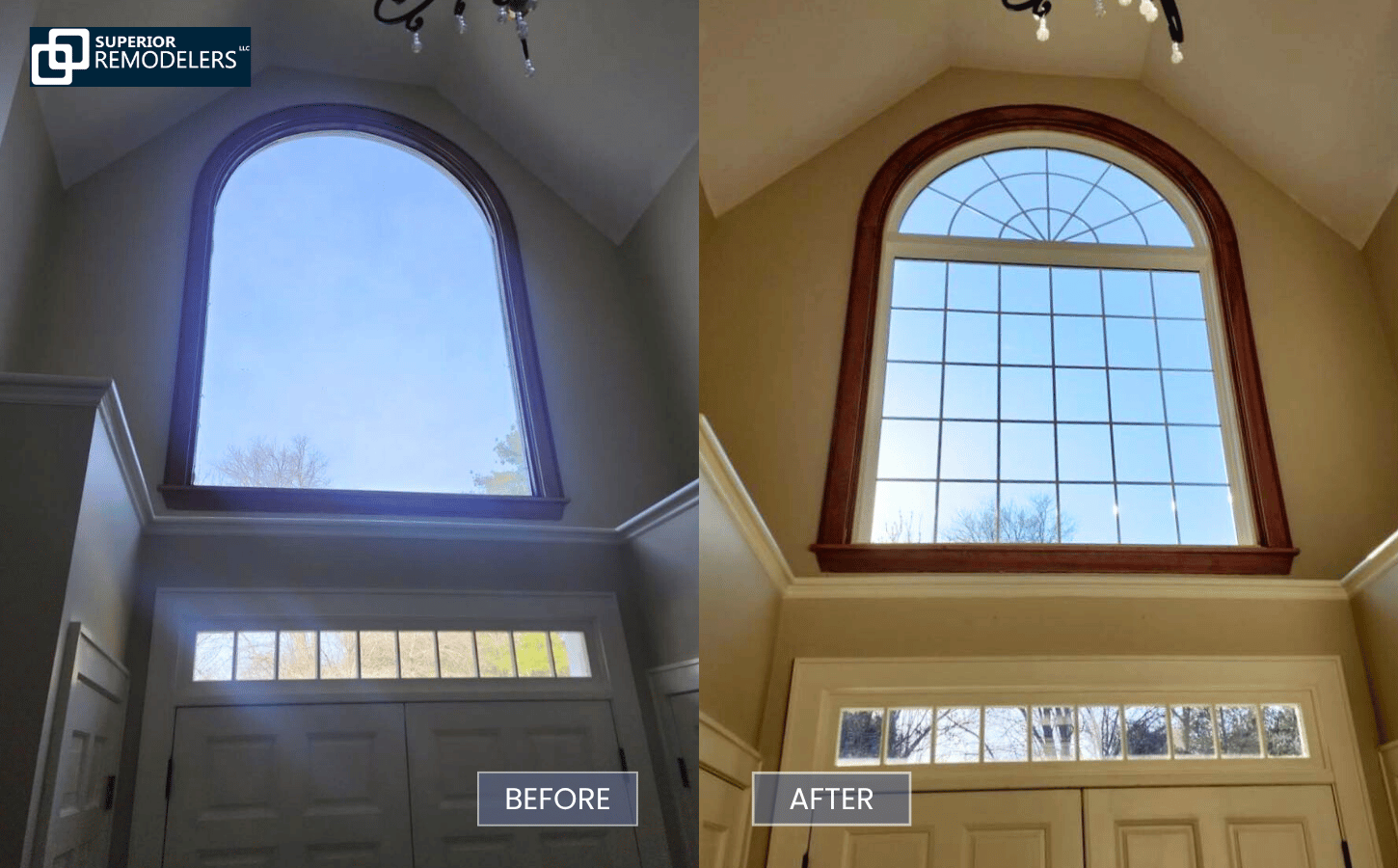 Superior Remodelers replaced the outdated unit with a custom-fit arched window designed for durability, insulation, and timeless style. The new window brightens the interior, enhances curb appeal, and provides lasting protection against the elements – a perfect balance of elegance and efficiency for this Newtown home.